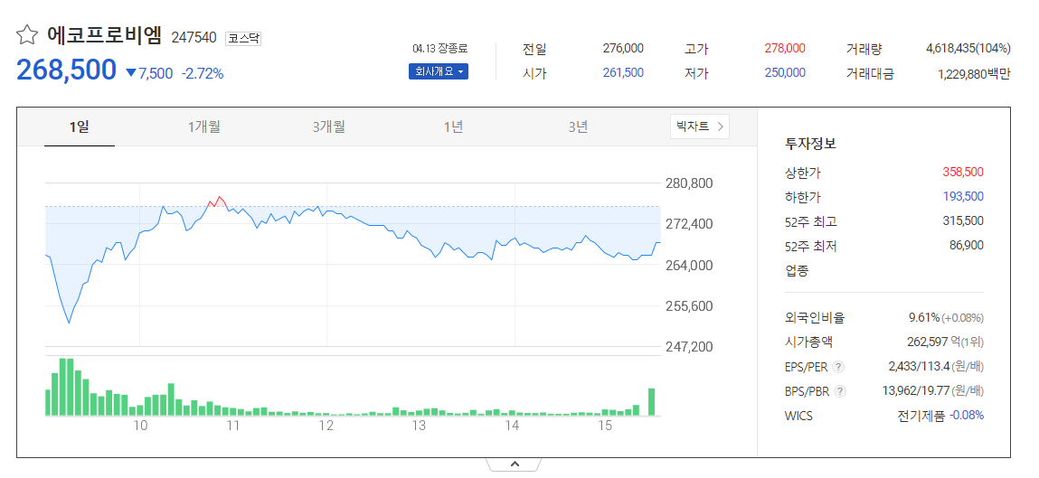 에코프로비엠의 주가전망, 목표주가, 기업정보에 대해 설명합니다. 주식에 투자하기 전에 회사 주가와 재무제표에 대해 아는 것이 매우 중요합니다. 에코프로비엠 주식의 주요현황과 투자정보를 확인하고 현재 시장동향을 파악해 봅시다.