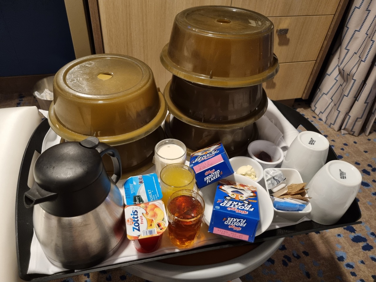 두 번째 아침에는 룸서비스로 조식이 제공되었습니다.